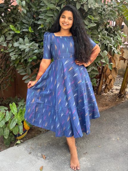 ₹999.00Blue Ikkat Dress – Midi Style