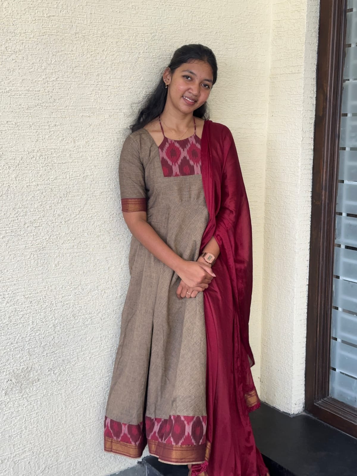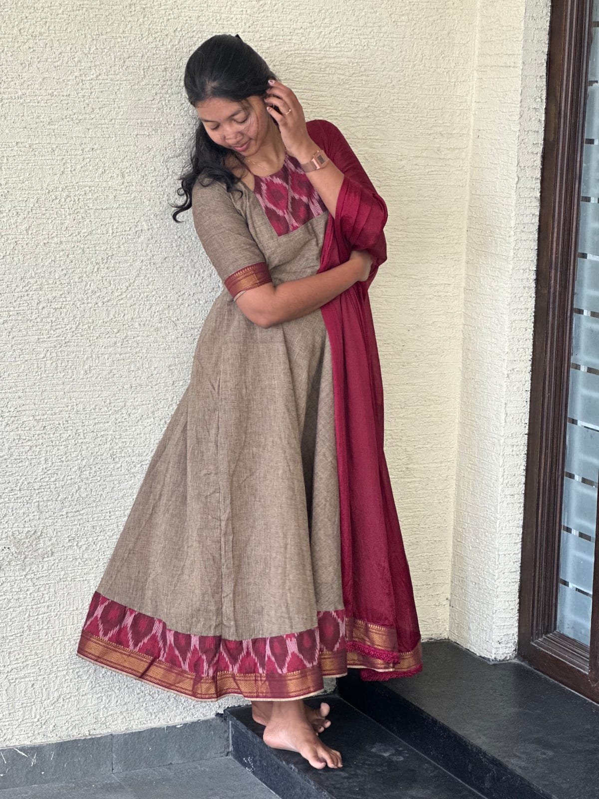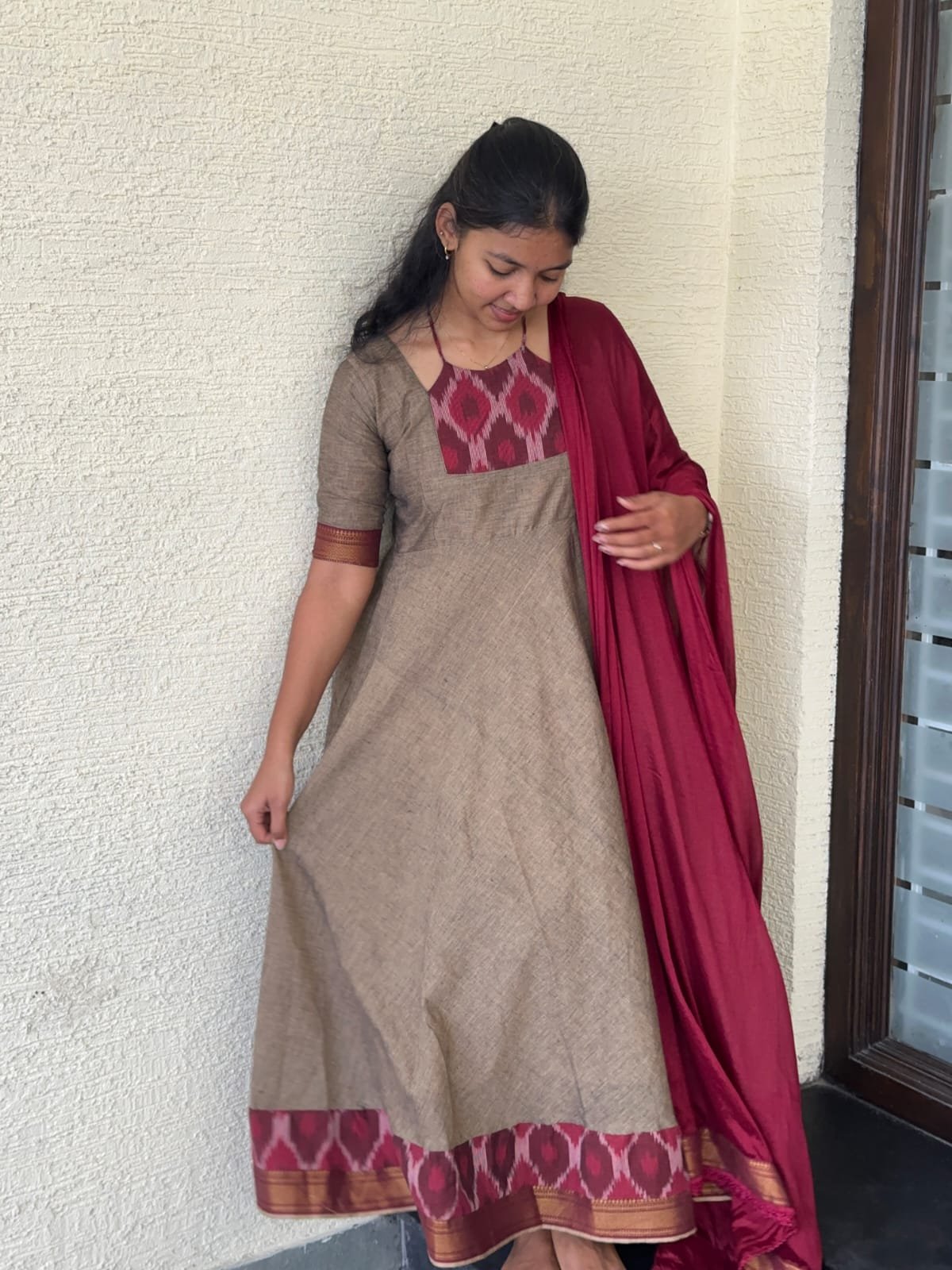 Be the first to review “Maroon Ikkat South Cotton Dress” Cancel reply